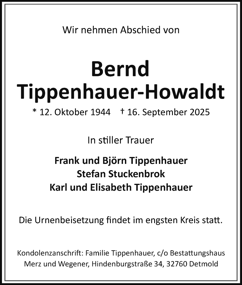Hier finden Sie Anzeigen aus der Lippischen Landes-Zeitung, die für Bernd Tippenhauer-Howaldt erschienen sind.
