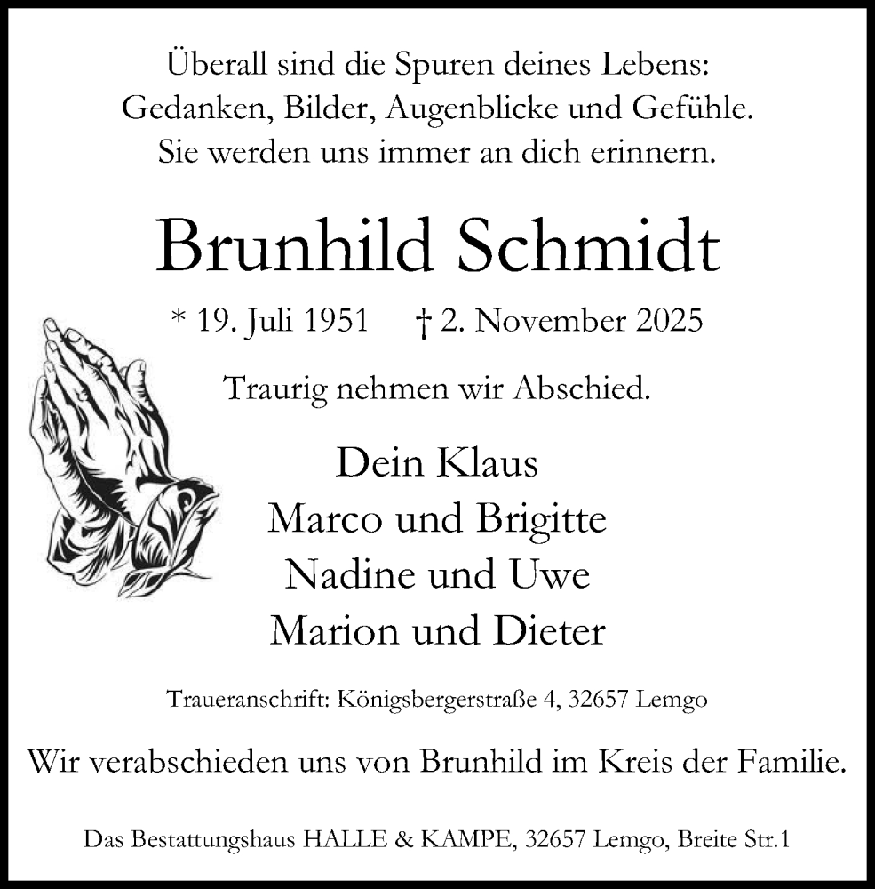 Hier finden Sie Anzeigen aus der Lippischen Landes-Zeitung, die für Brunhild Schmidt erschienen sind.