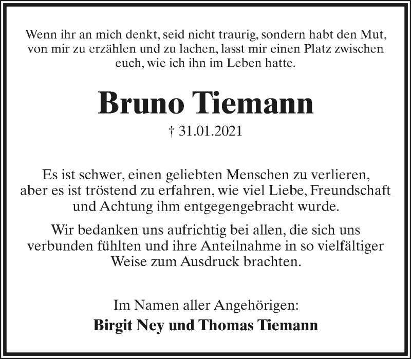 Hier finden Sie Anzeigen aus der Lippischen Landes-Zeitung, die für Bruno Tiemann erschienen sind.