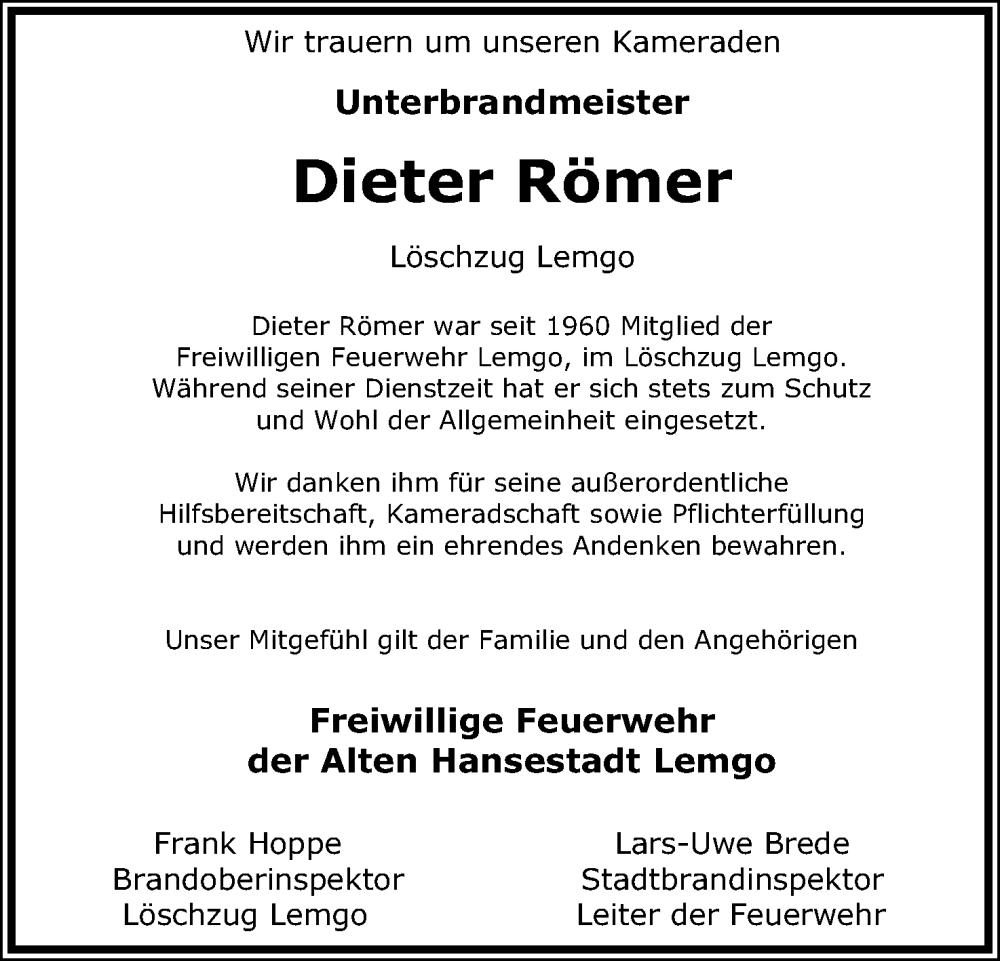 Hier finden Sie Anzeigen aus der Lippischen Landes-Zeitung, die für Dieter Römer erschienen sind.