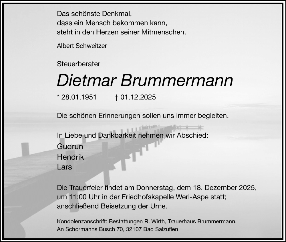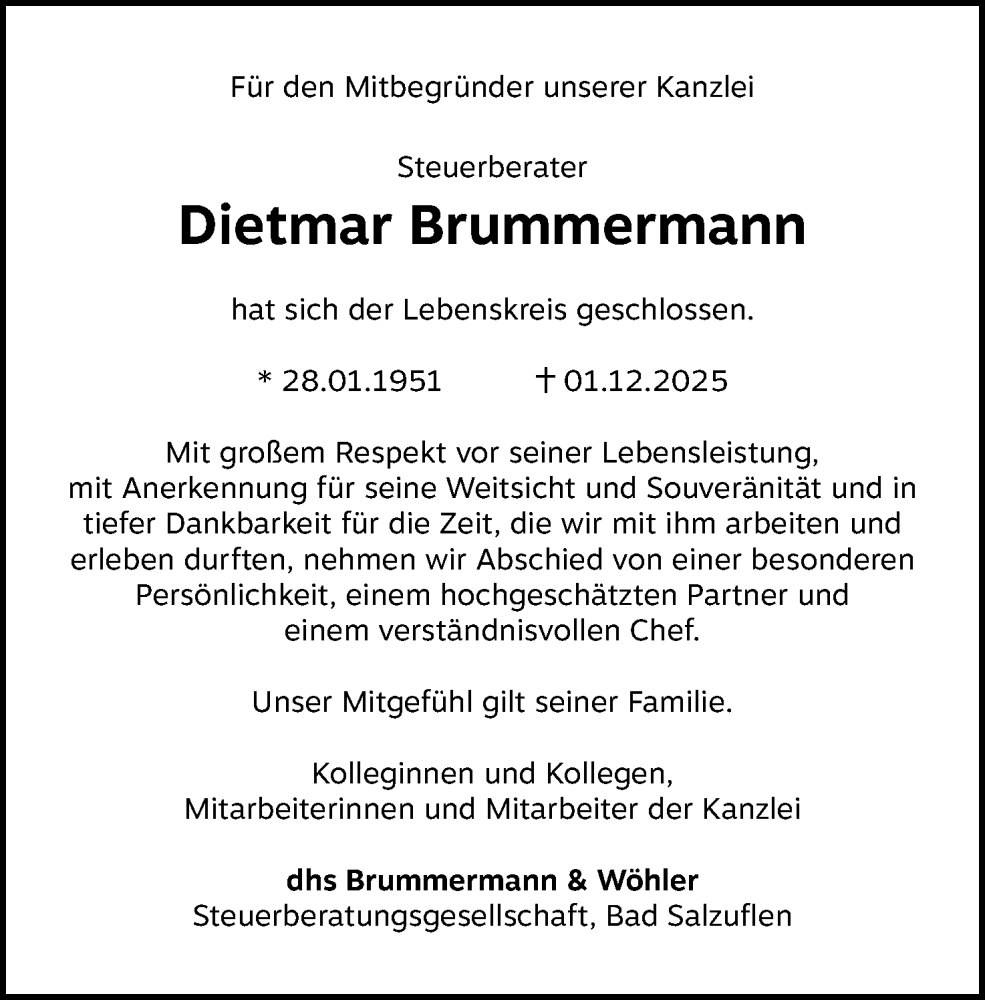 Hier finden Sie Anzeigen aus der Lippischen Landes-Zeitung, die für Dietmar Brummermann erschienen sind.