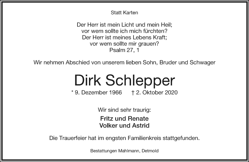 Hier finden Sie Anzeigen aus der Lippischen Landes-Zeitung, die für Dirk Schlepper erschienen sind.