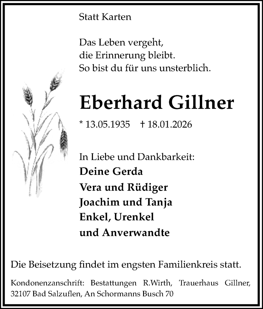 Hier finden Sie Anzeigen aus der Lippischen Landes-Zeitung, die für Eberhard Gillner erschienen sind.