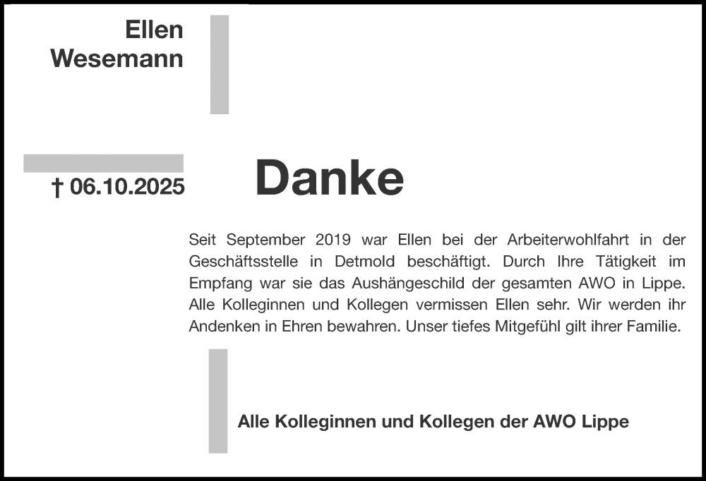Hier finden Sie Anzeigen aus der Lippischen Landes-Zeitung, die für Ellen Wesemann erschienen sind.