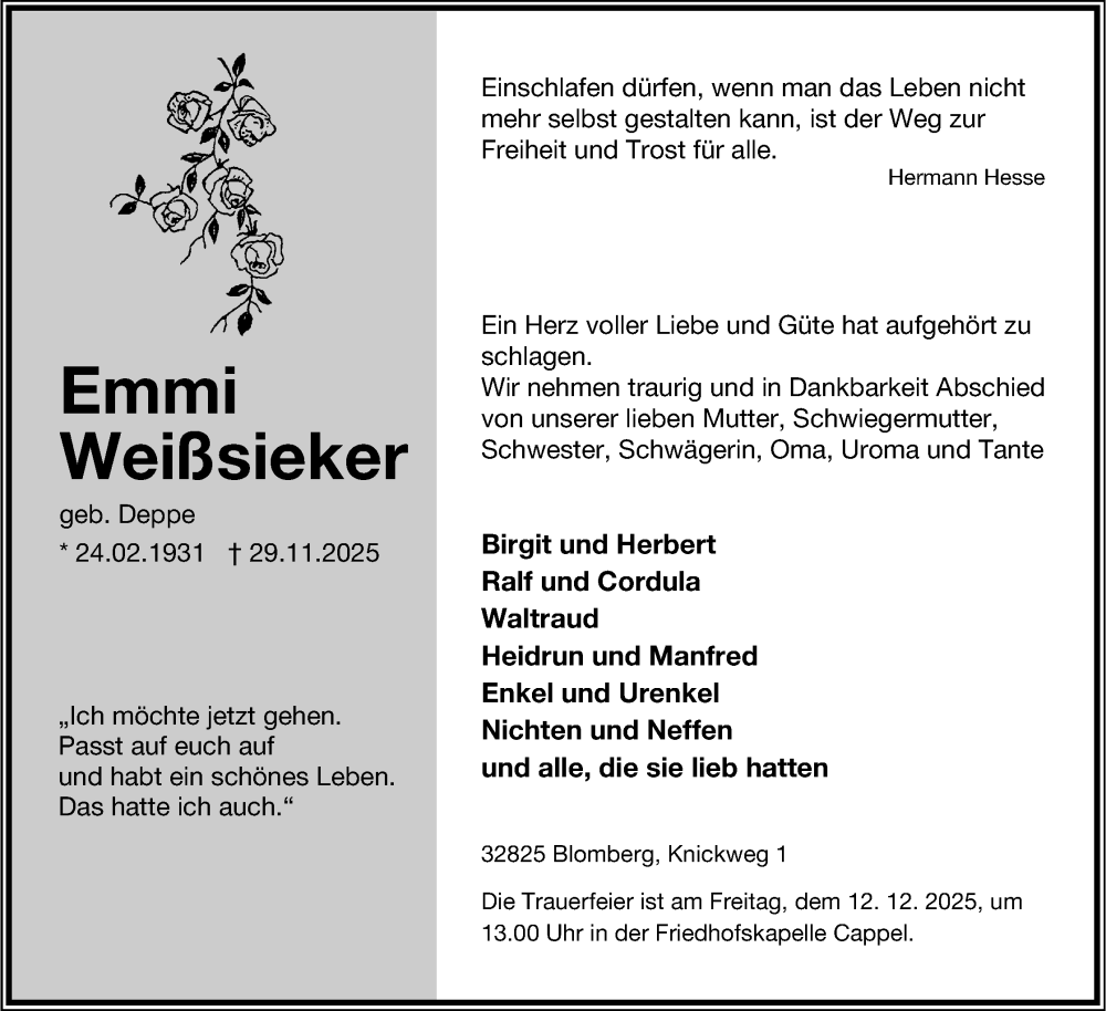 Hier finden Sie Anzeigen aus der Lippischen Landes-Zeitung, die für Emmi Weißsieker erschienen sind.