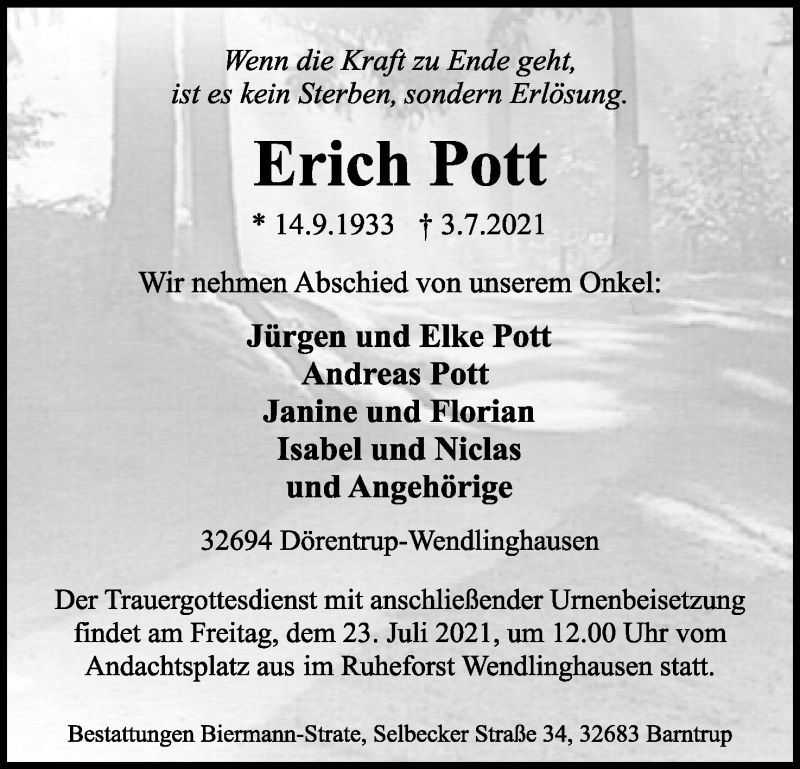 Hier finden Sie Anzeigen aus der Lippischen Landes-Zeitung, die für Erich Pott erschienen sind.