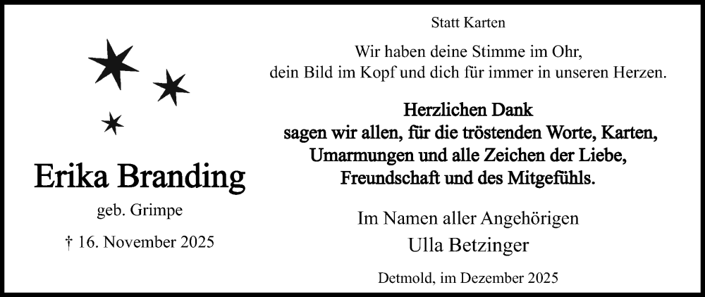 Hier finden Sie Anzeigen aus der Lippischen Landes-Zeitung, die für Erika Branding erschienen sind.
