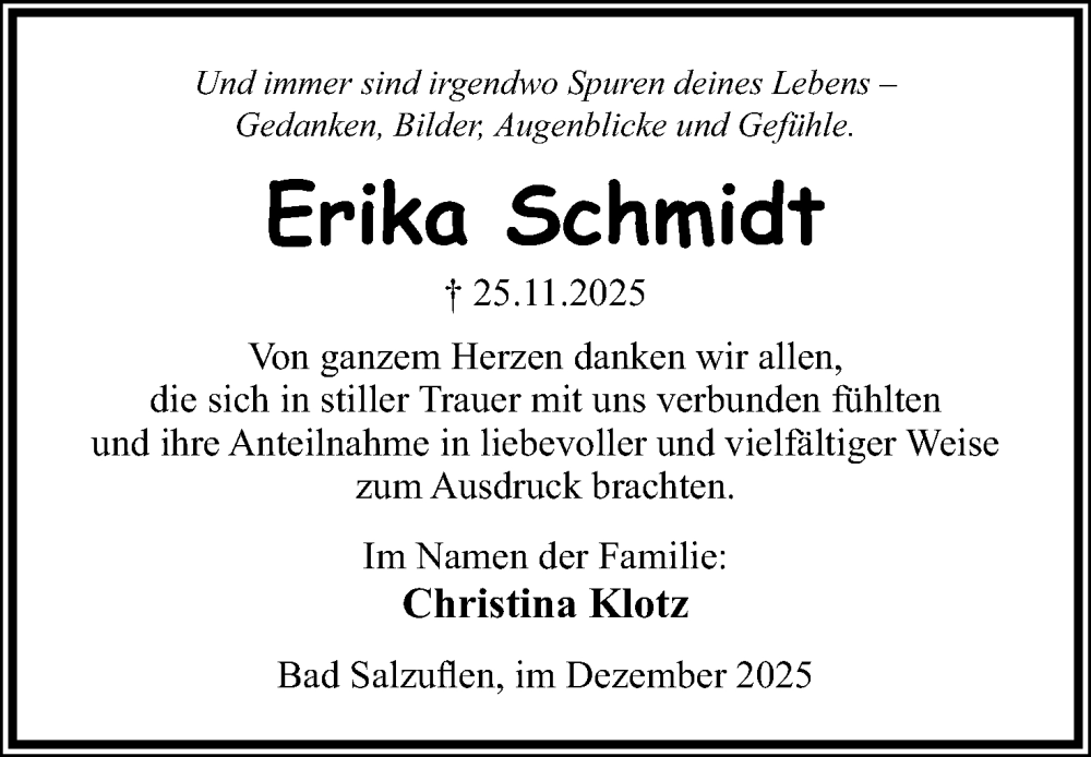 Hier finden Sie Anzeigen aus der Lippischen Landes-Zeitung, die für Erika Schmidt erschienen sind.