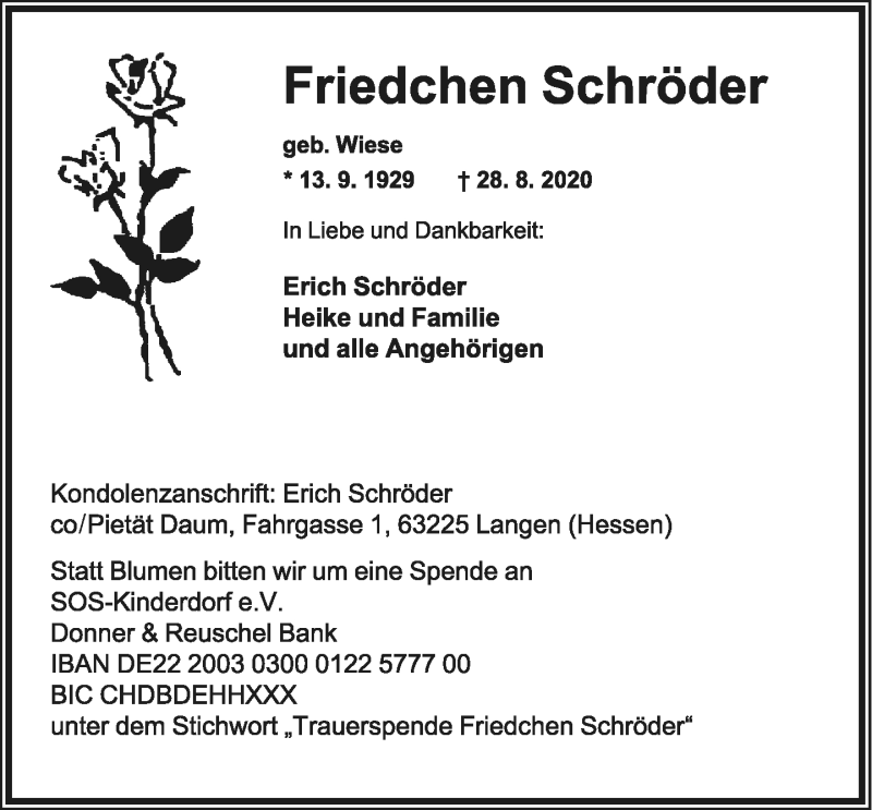 Hier finden Sie Anzeigen aus der Lippischen Landes-Zeitung, die für Friedchen Schröder erschienen sind.