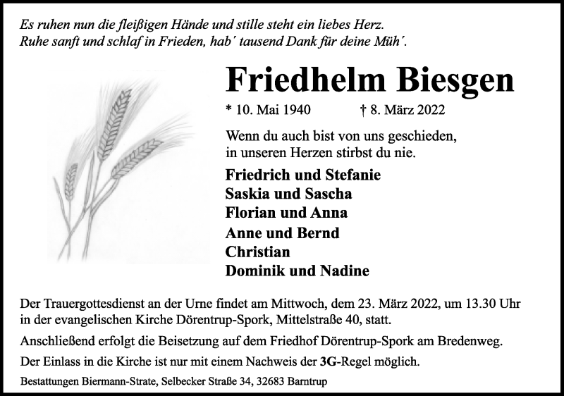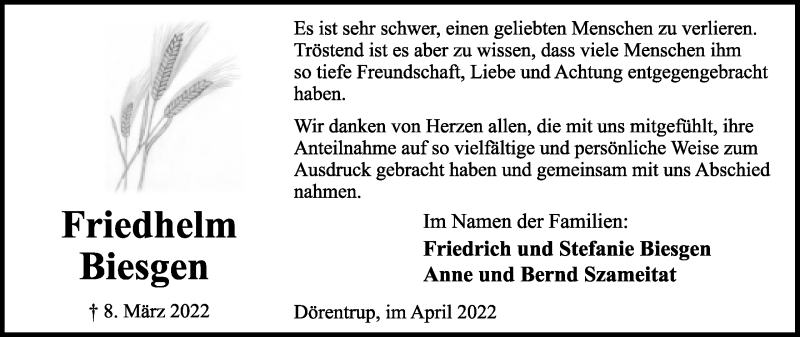 Hier finden Sie Anzeigen aus der Lippischen Landes-Zeitung, die für Friedhelm Biesgen erschienen sind.