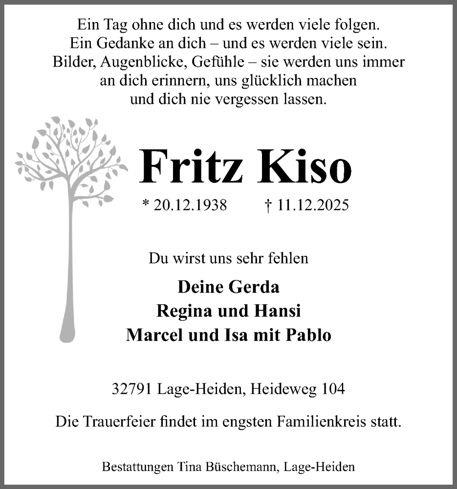 Hier finden Sie Anzeigen aus der Lippischen Landes-Zeitung, die für Fritz Kiso erschienen sind.
