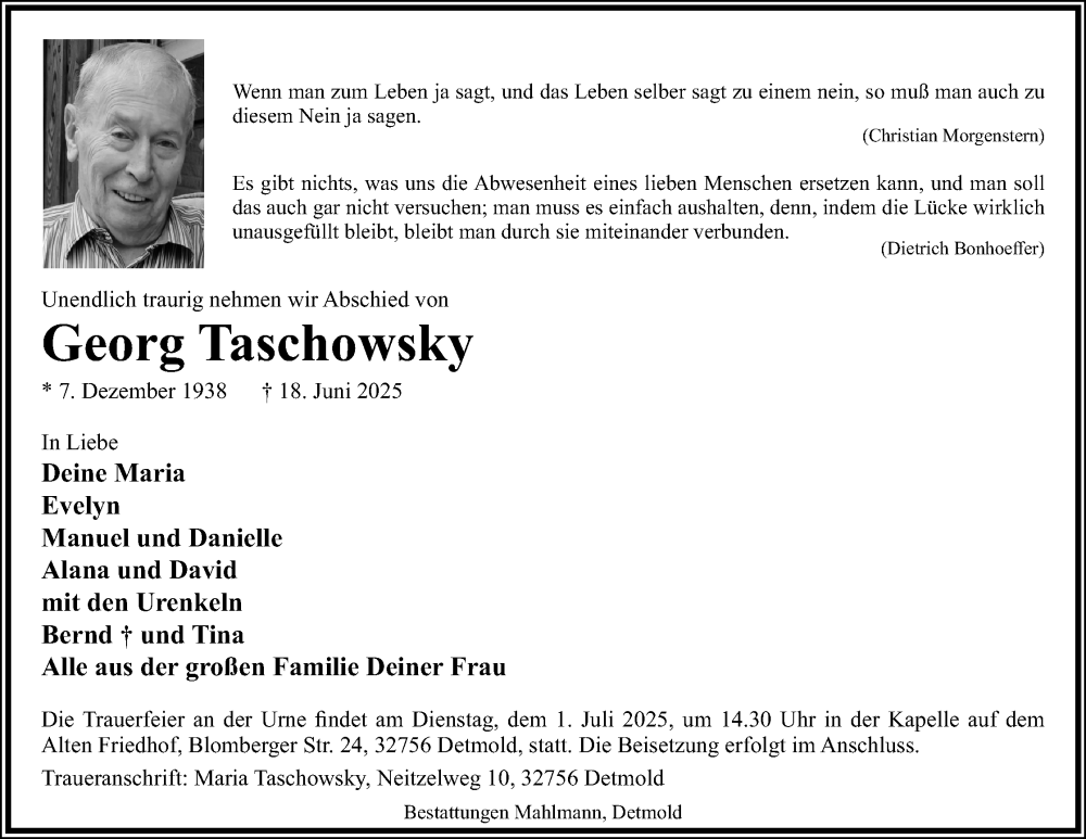 Hier finden Sie Anzeigen aus der Lippischen Landes-Zeitung, die für Georg Taschowsky erschienen sind.