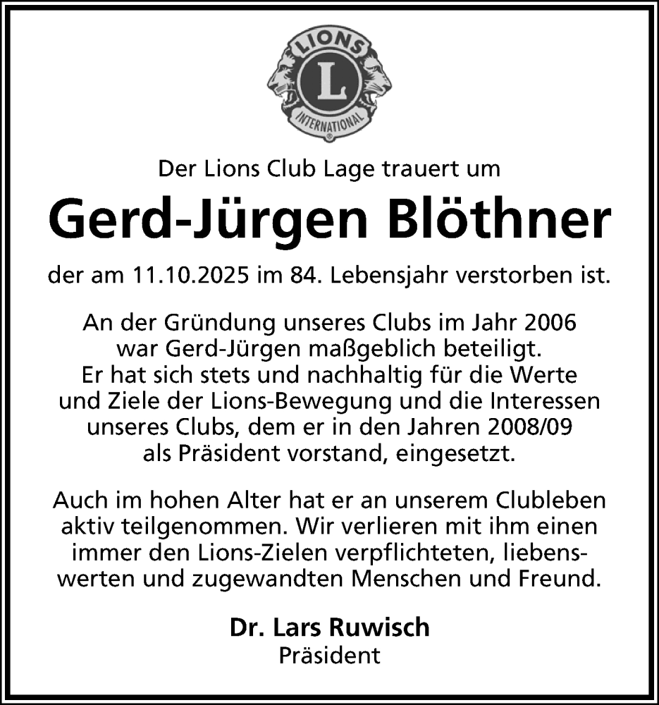 Hier finden Sie Anzeigen aus der Lippischen Landes-Zeitung, die für Gerd-Jürgen Blöthner erschienen sind.