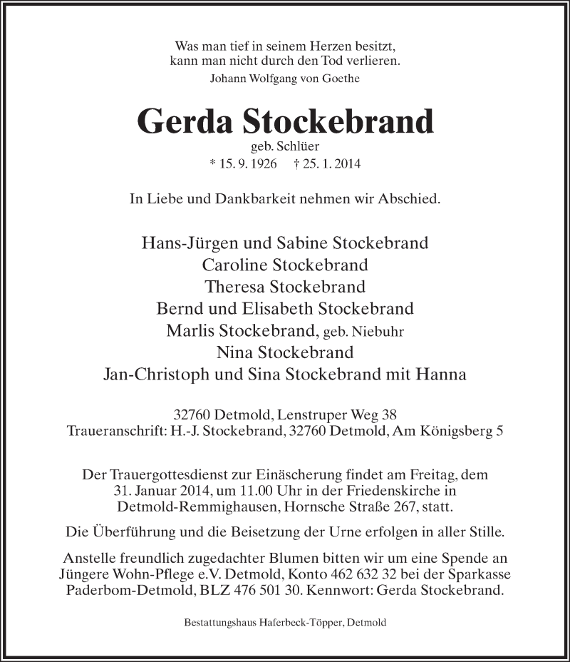 Hier finden Sie Anzeigen aus der Lippischen Landes-Zeitung, die für Gerda Stockebrand erschienen sind.