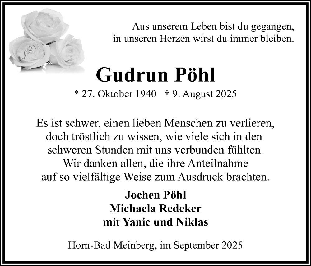 Hier finden Sie Anzeigen aus der Lippischen Landes-Zeitung, die für Gudrun Pöhl erschienen sind.