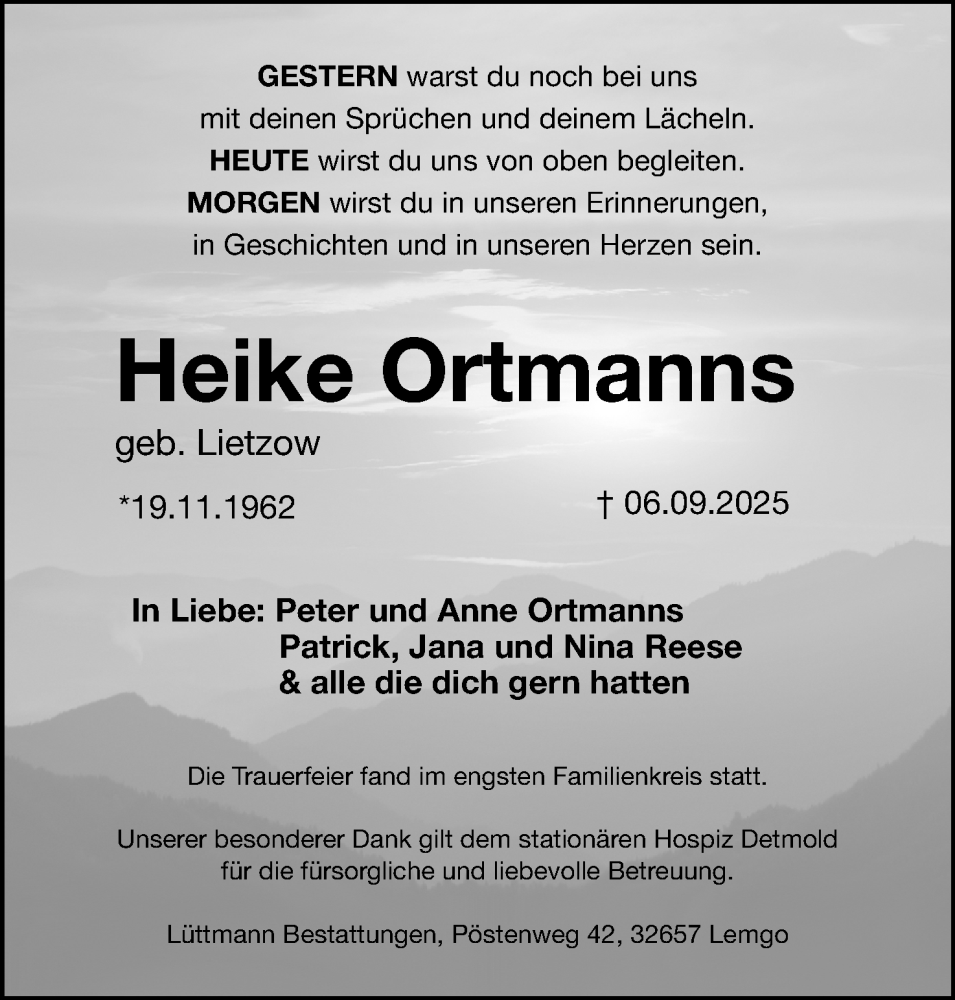 Hier finden Sie Anzeigen aus der Lippischen Landes-Zeitung, die für Heike Ortmanns erschienen sind.