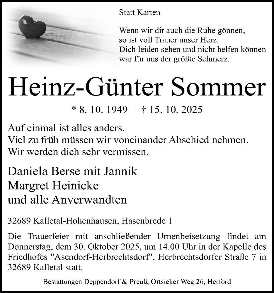 Hier finden Sie Anzeigen aus der Lippischen Landes-Zeitung, die für Heinz-Günter Sommer erschienen sind.