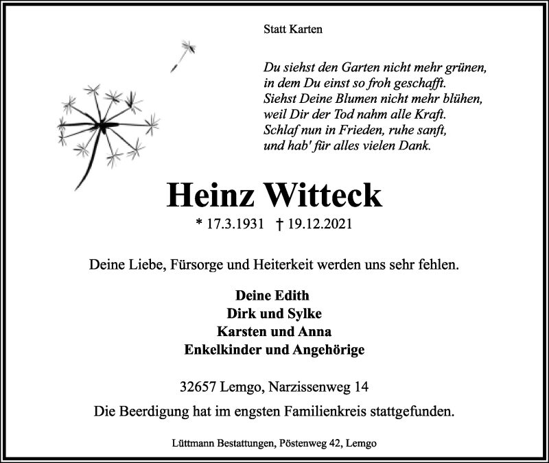 Hier finden Sie Anzeigen aus der Lippischen Landes-Zeitung, die für Heinz Witteck erschienen sind.