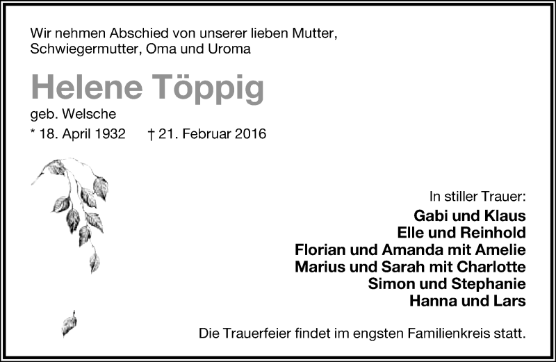 Hier finden Sie Anzeigen aus der Lippischen Landes-Zeitung, die für Helene Töpping erschienen sind.