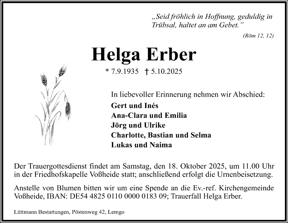 Hier finden Sie Anzeigen aus der Lippischen Landes-Zeitung, die für Helga Erber erschienen sind.
