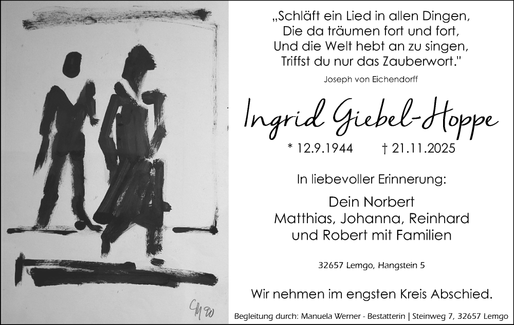 Hier finden Sie Anzeigen aus der Lippischen Landes-Zeitung, die für Ingrid Giebel-Hoppe erschienen sind.