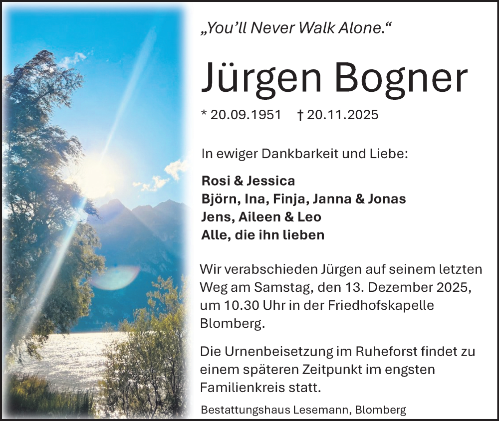 Hier finden Sie Anzeigen aus der Lippischen Landes-Zeitung, die für Jürgen Bogner erschienen sind.
