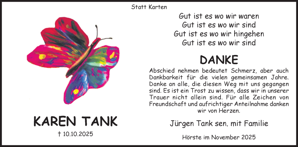 Hier finden Sie Anzeigen aus der Lippischen Landes-Zeitung, die für Karen Tank erschienen sind.