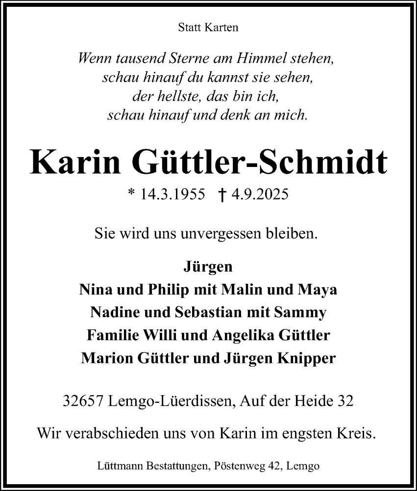 Hier finden Sie Anzeigen aus der Lippischen Landes-Zeitung, die für Karin Güttler-Schmidt erschienen sind.