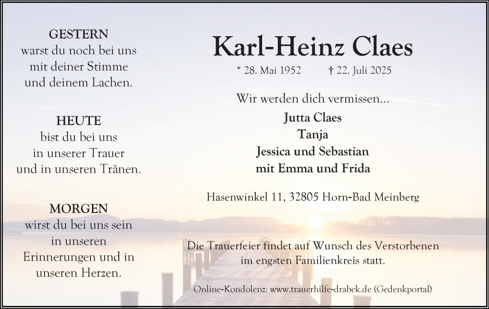 Hier finden Sie Anzeigen aus der Lippischen Landes-Zeitung, die für Karl-Heinz Claes erschienen sind.