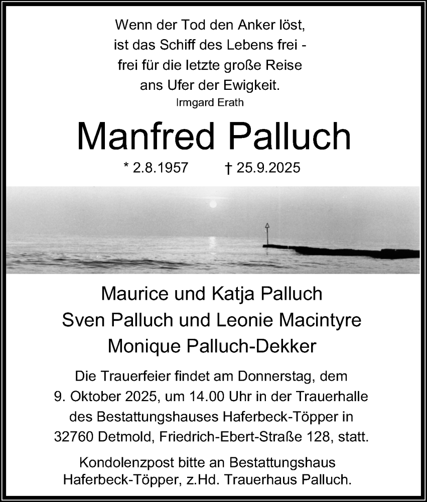 Hier finden Sie Anzeigen aus der Lippischen Landes-Zeitung, die für Manfred Palluch erschienen sind.