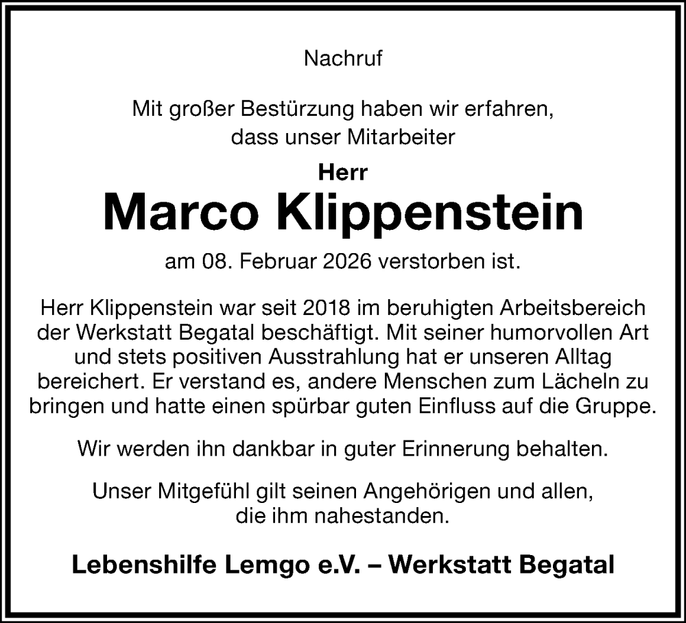 Hier finden Sie Anzeigen aus der Lippischen Landes-Zeitung, die für Marco Klippenstein erschienen sind.