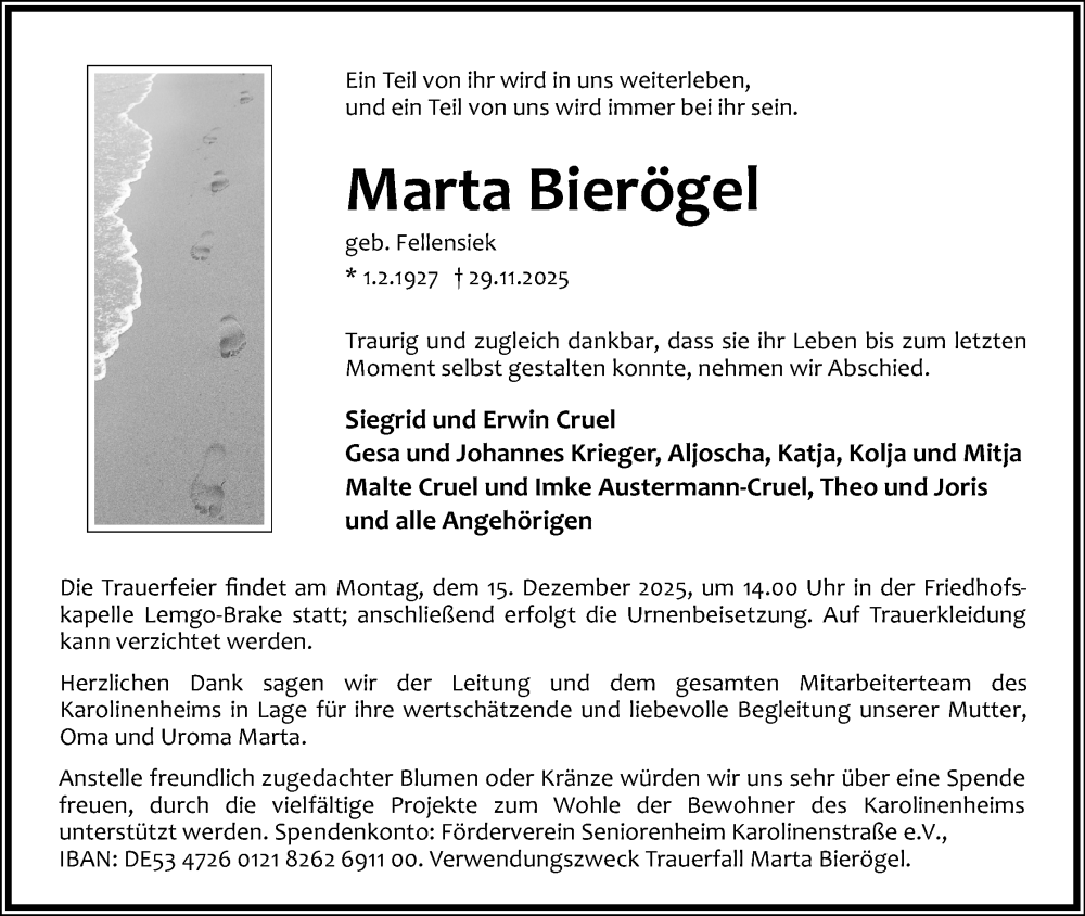 Hier finden Sie Anzeigen aus der Lippischen Landes-Zeitung, die für Marta Bierögel erschienen sind.