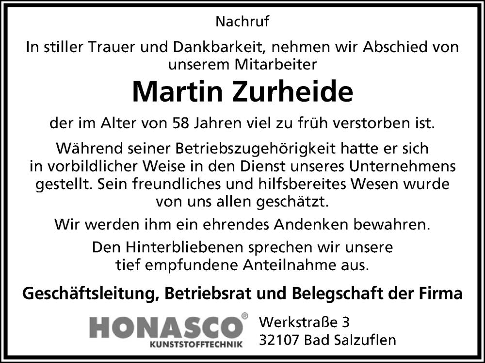Hier finden Sie Anzeigen aus der Lippischen Landes-Zeitung, die für Martin Zurheide erschienen sind.