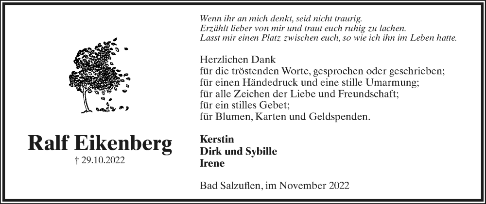 Hier finden Sie Anzeigen aus der Lippischen Landes-Zeitung, die für Ralf Eikenberg erschienen sind.