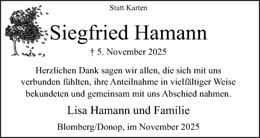 Hier finden Sie Anzeigen aus der Lippischen Landes-Zeitung, die für Siegfried Hamann erschienen sind.