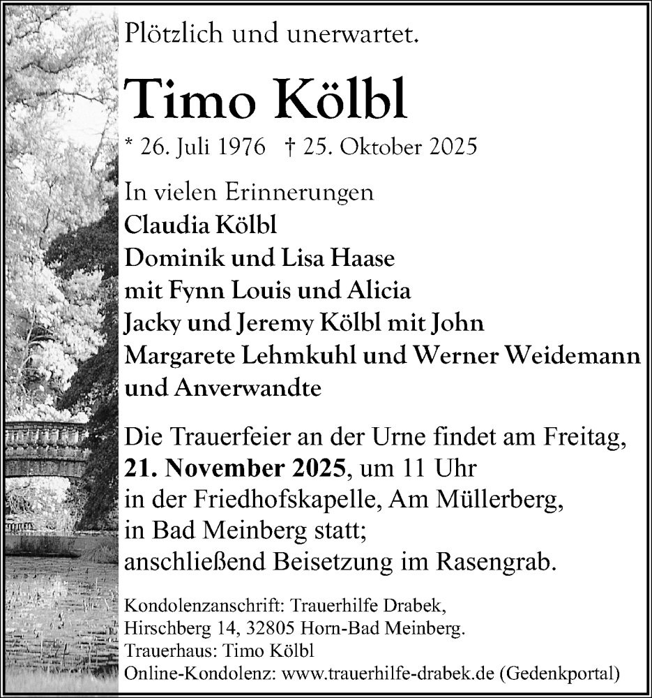 Hier finden Sie Anzeigen aus der Lippischen Landes-Zeitung, die für Timo Kölbl erschienen sind.