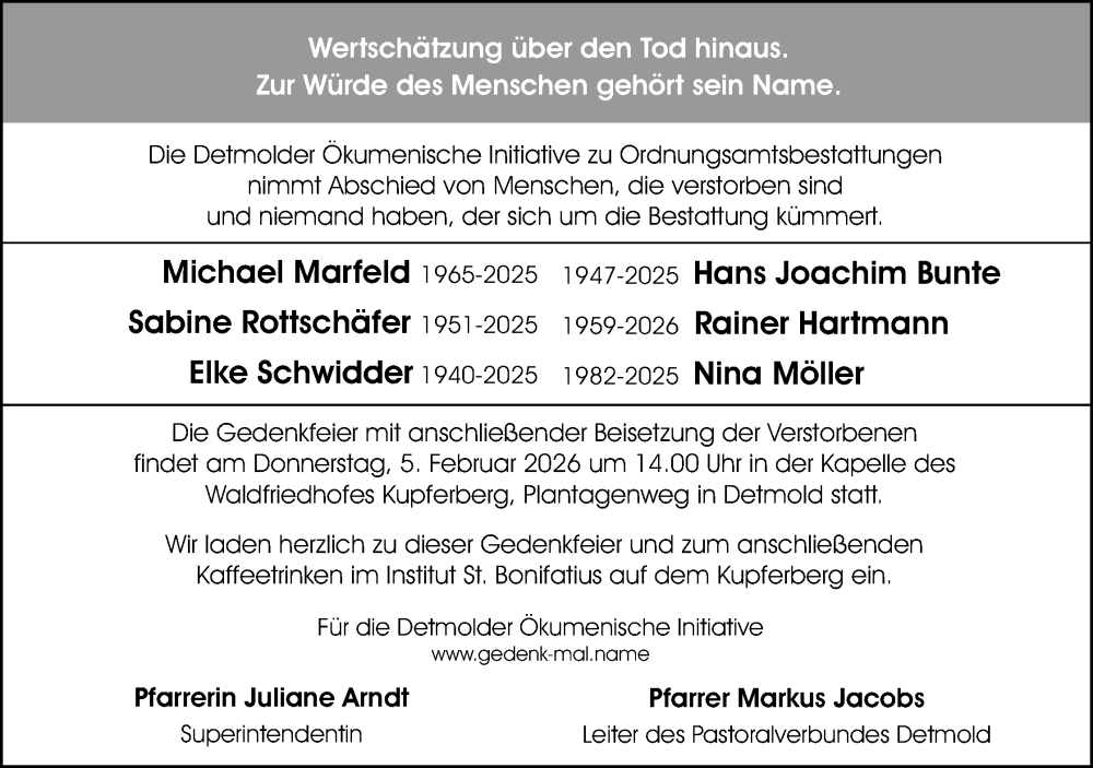 Hier finden Sie Anzeigen aus der Lippischen Landes-Zeitung, die für Detmolder Ökumenische Initiative erschienen sind.