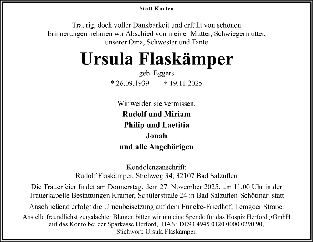Hier finden Sie Anzeigen aus der Lippischen Landes-Zeitung, die für Ursula Flaskämper erschienen sind.