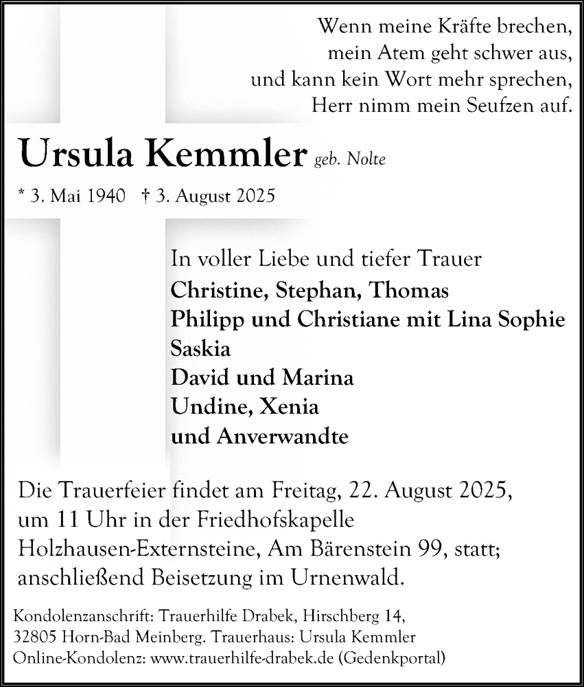 Hier finden Sie Anzeigen aus der Lippischen Landes-Zeitung, die für Ursula Kemmler erschienen sind.