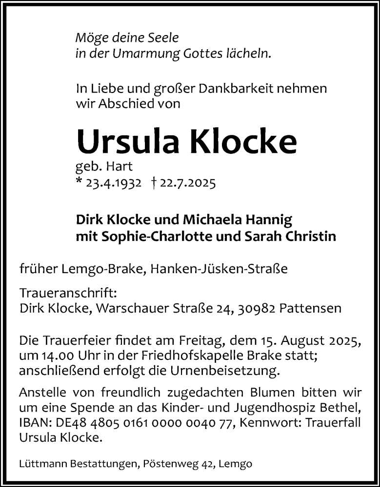 Hier finden Sie Anzeigen aus der Lippischen Landes-Zeitung, die für Ursula Klocke erschienen sind.