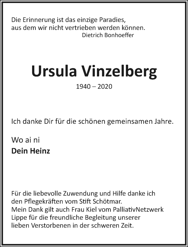 Hier finden Sie Anzeigen aus der Lippischen Landes-Zeitung, die für Ursula Vinzelberg erschienen sind.