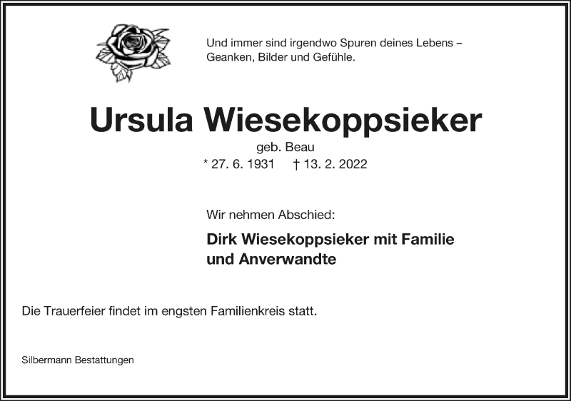 Hier finden Sie Anzeigen aus der Lippischen Landes-Zeitung, die für Ursula Wiesekoppsieker erschienen sind.