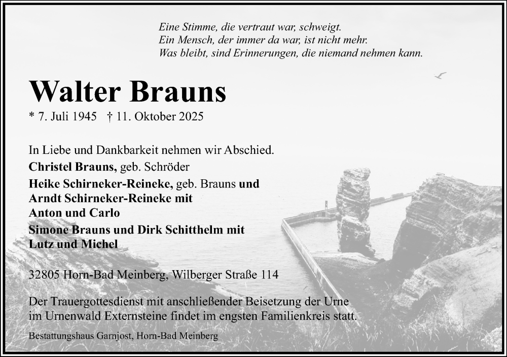 Hier finden Sie Anzeigen aus der Lippischen Landes-Zeitung, die für Walter Brauns erschienen sind.