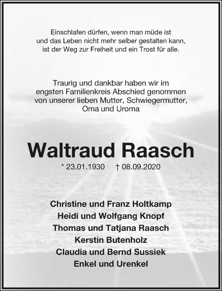 Hier finden Sie Anzeigen aus der Lippischen Landes-Zeitung, die für Waltraud Raasch erschienen sind.