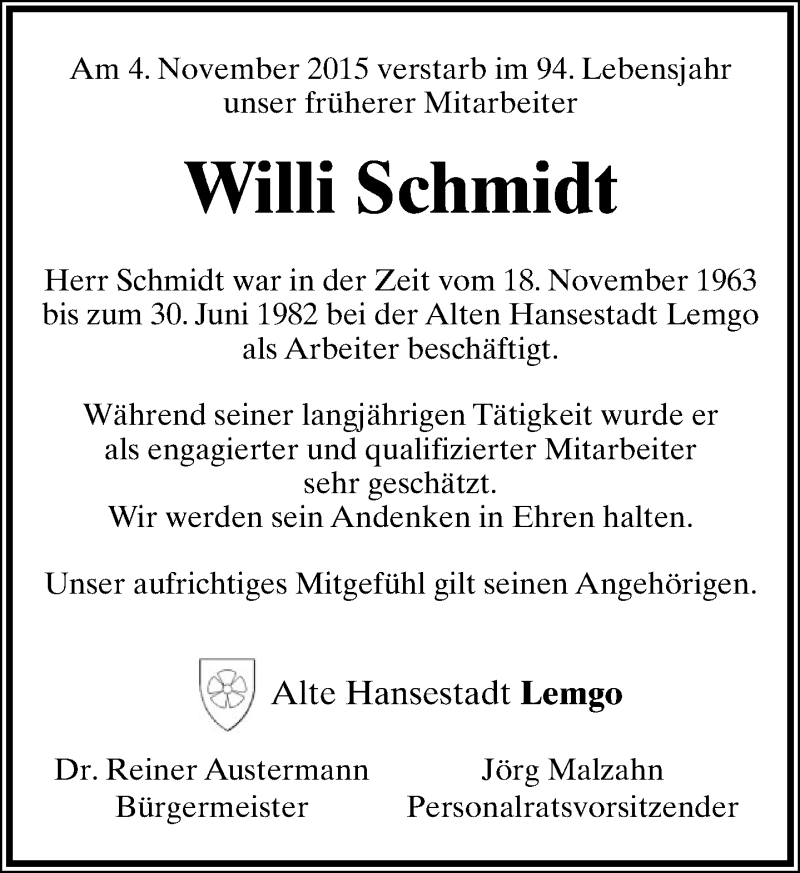Hier finden Sie Anzeigen aus der Lippischen Landes-Zeitung, die für Willi Schmidt erschienen sind.