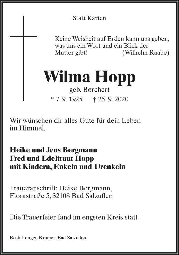 Hier finden Sie Anzeigen aus der Lippischen Landes-Zeitung, die für Wilma Hopp erschienen sind.