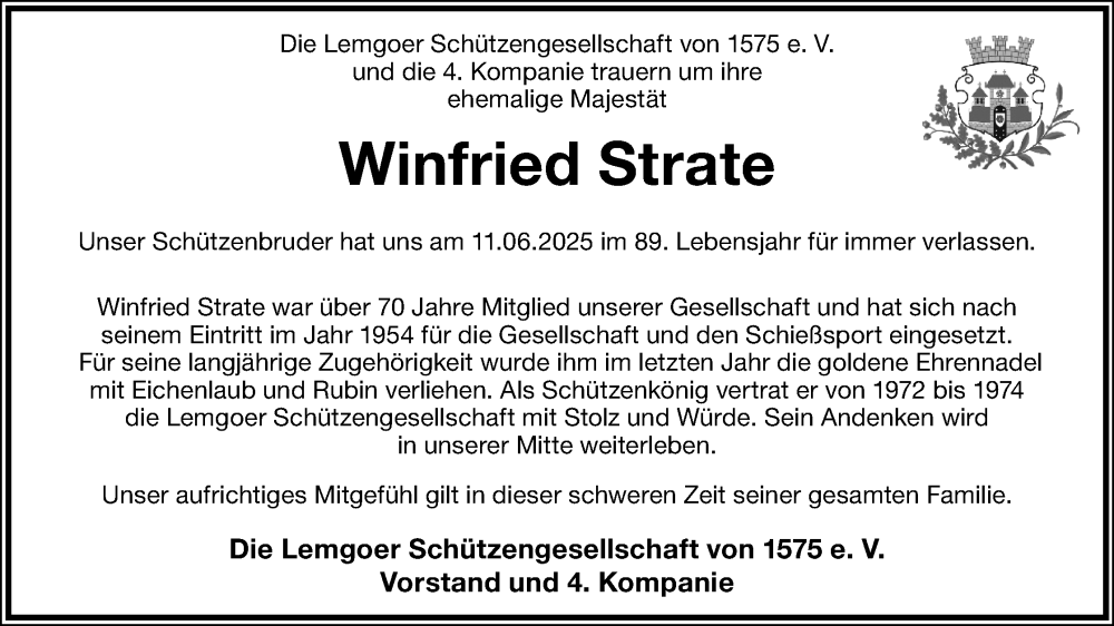 Hier finden Sie Anzeigen aus der Lippischen Landes-Zeitung, die für Winfried Strate erschienen sind.